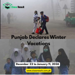Punjab has officially announced winter vacations for schools for all over in Punjab province.it is informed that to all students and their parents that all schools will be closed from December 22 until January 11 2026. As a winter weather starts getting colder winter vacations provides a break time for students to enjoy this cold weather and stay cozy by staying at … [Read more...] about Winter Vacations in Punjab:From December 22 to January 11, 2026