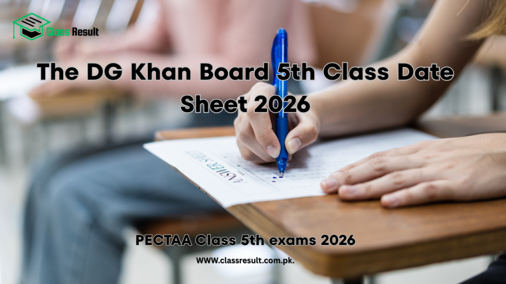 The 5th Class Date Sheet is an official timetable issued by BISE DG Khan that specifies the dates, timing, and subjects for the annual examinations of 5th-grade students. It is expected that date sheet of 5th class will be available in a first week of January 2026. After that, board will conduct exams of 5th class in a month of February 2026. Board usually commence exams after one month of announcement of date sheet 2026. You can check your date sheet of 5th class DG khan board here on our website, which is www.classresult.com.pk.